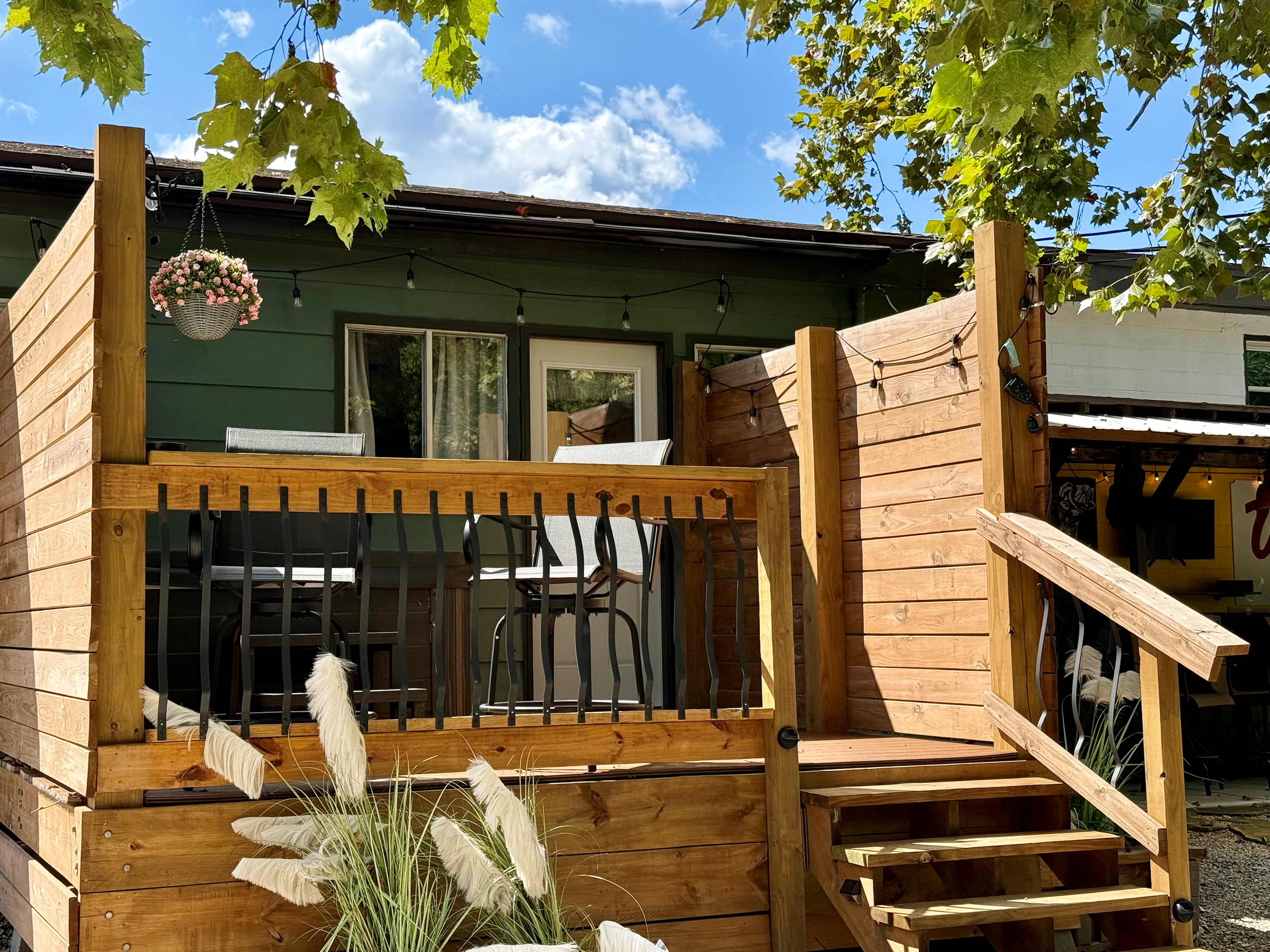 Pickle ball paddles are located in the grill area.